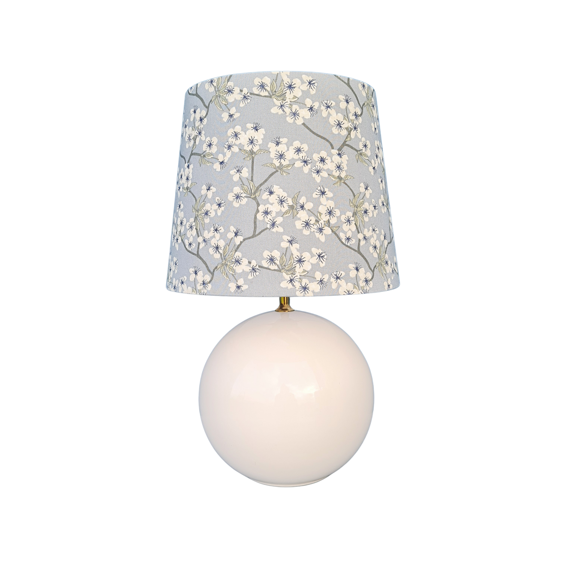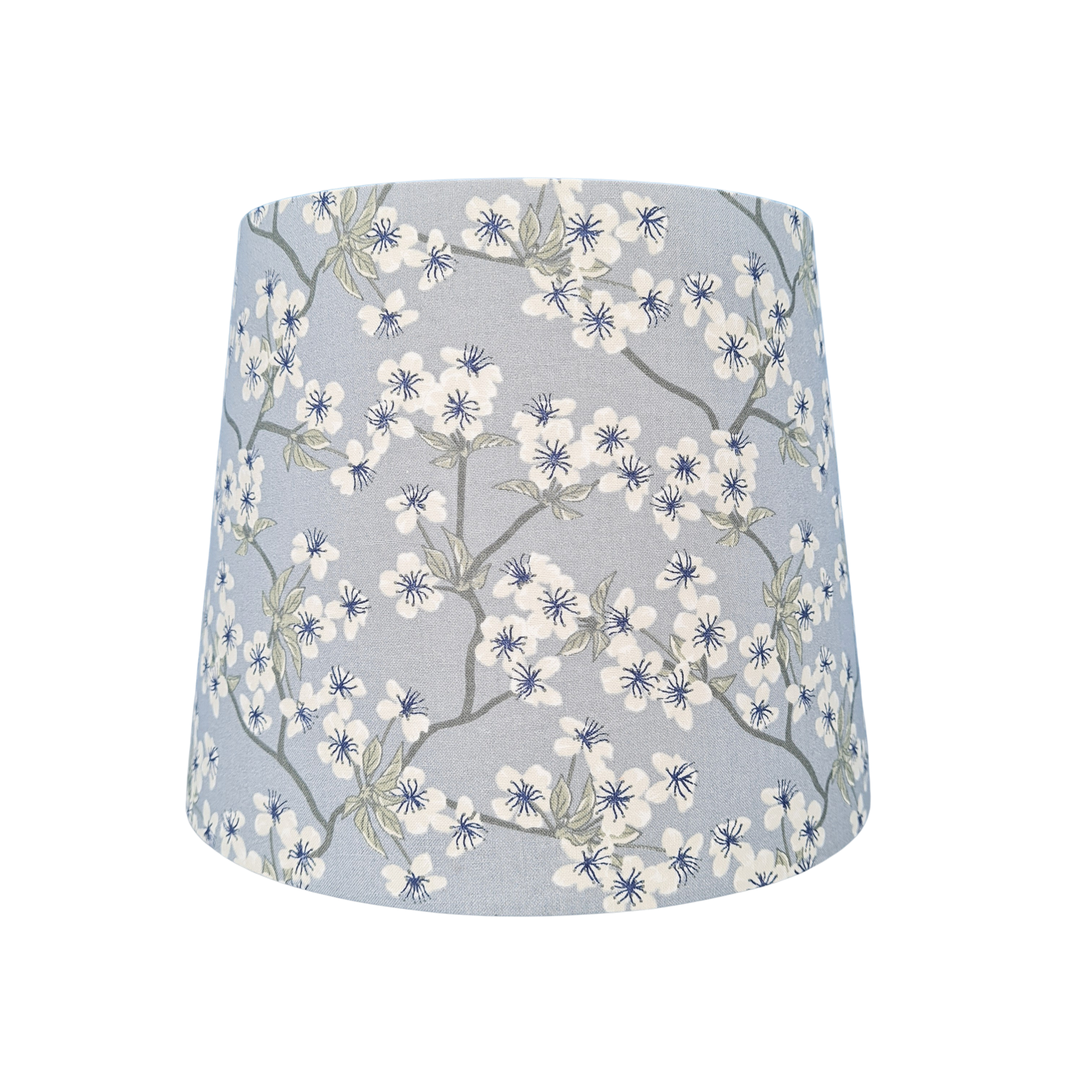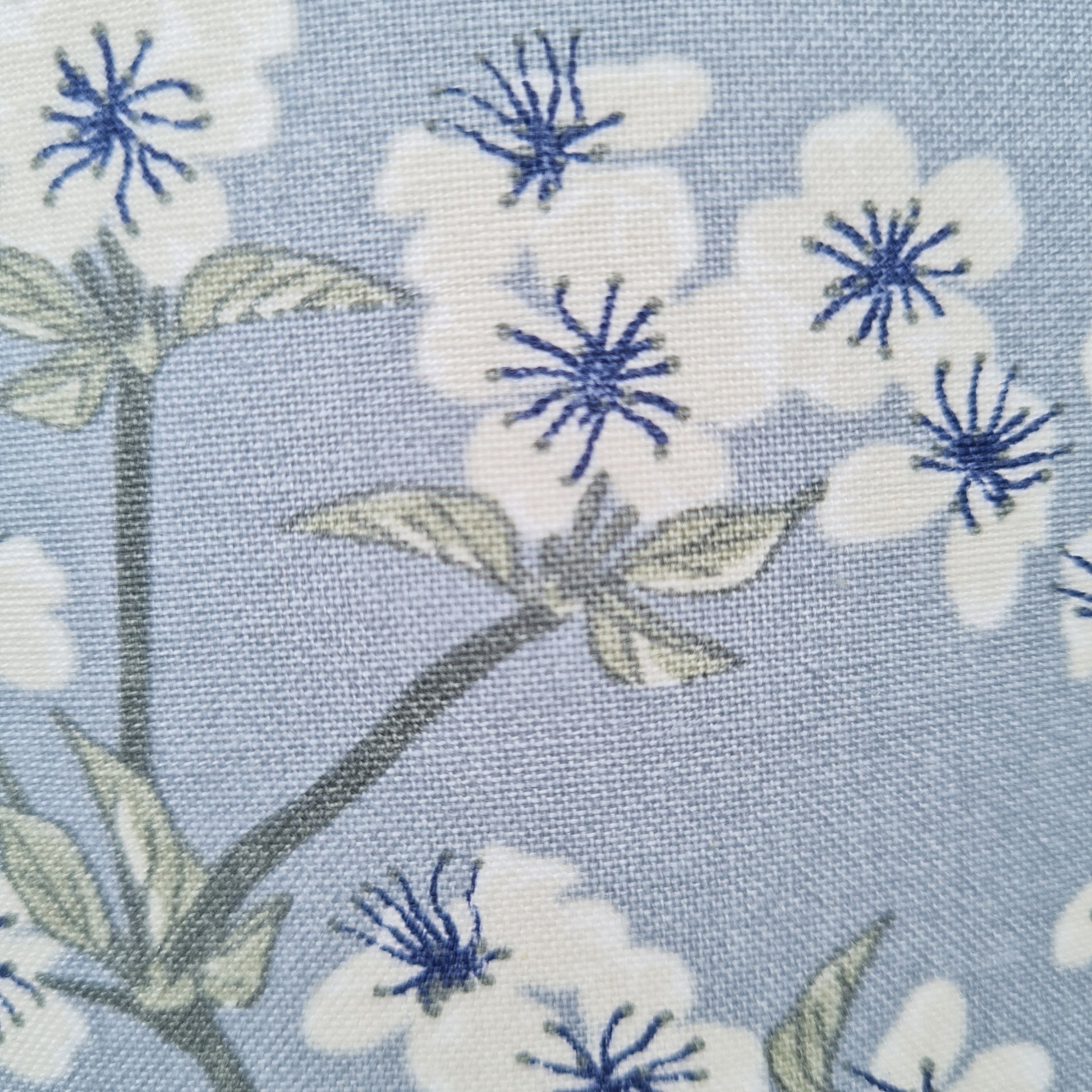 Håndlavet lampeskærm i flot bomuld med et meget smukt blomster mønster på støvet blå baggrund