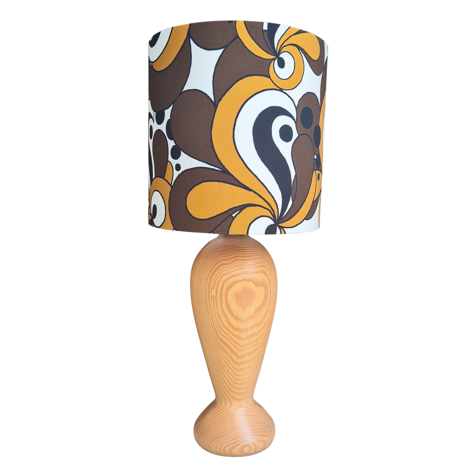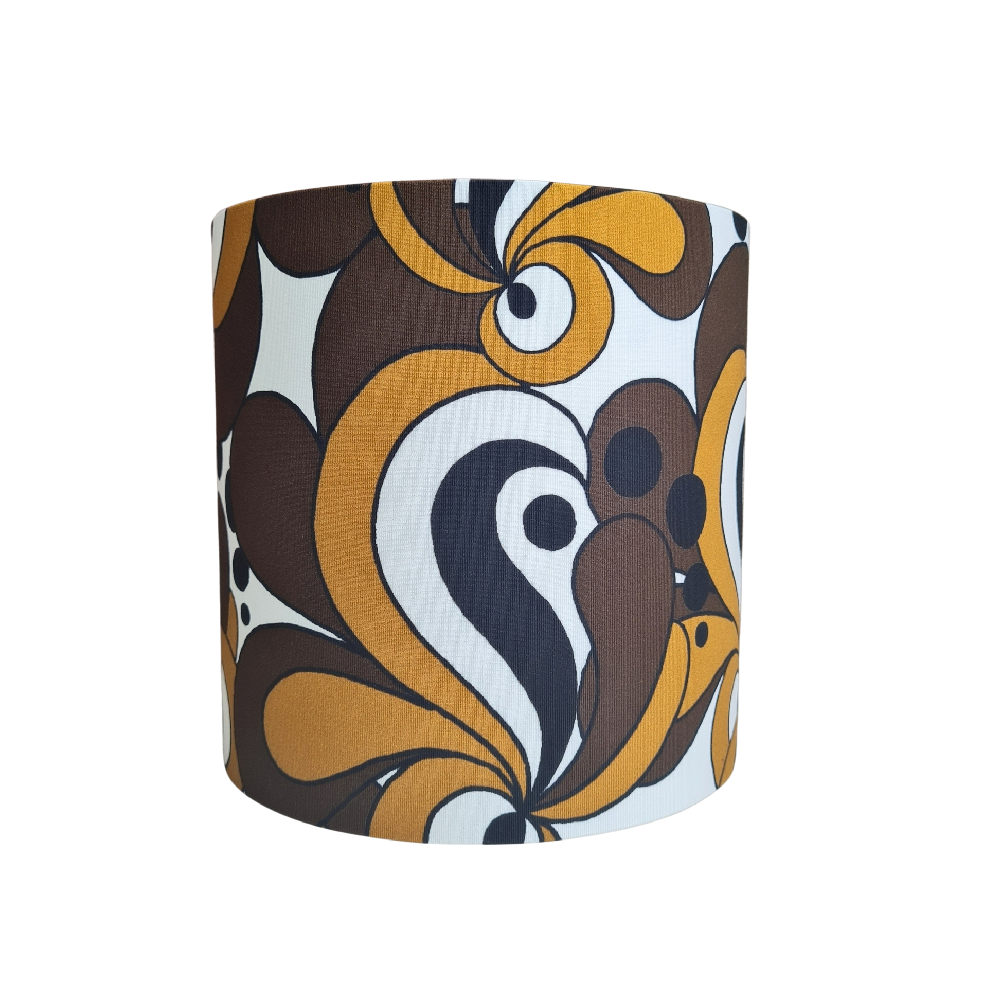 Håndlavet lampeskærm i bomuld med flot grafisk mønster inspireret af 1970`erne, varme brune nuancer blandet med hvid