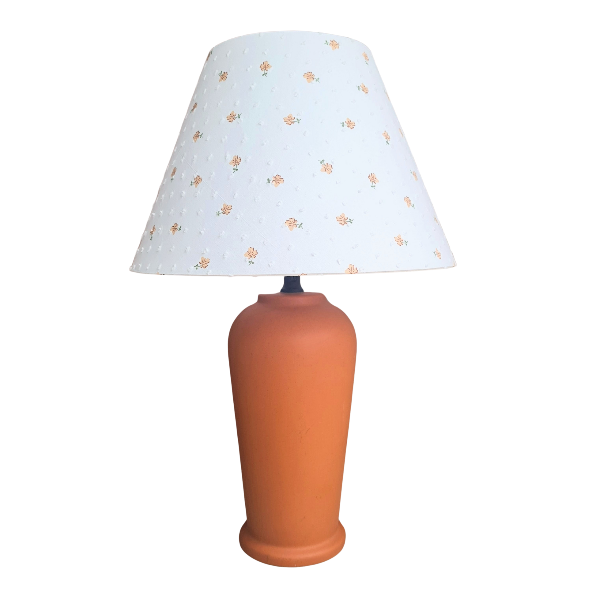 Håndlavet lampeskærm i hvid bomuld med smukke gyldne blomster og små fremtrædende prikker