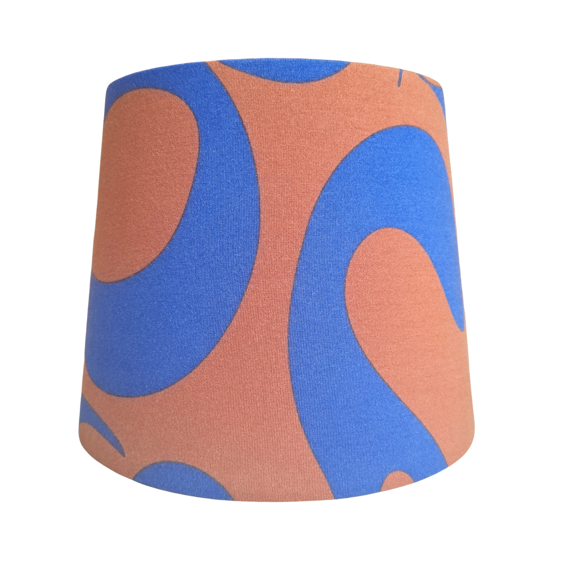 Håndlavet lampeskærm i bomuld med et smukt organisk mønster med farverne kobolt blå og brun