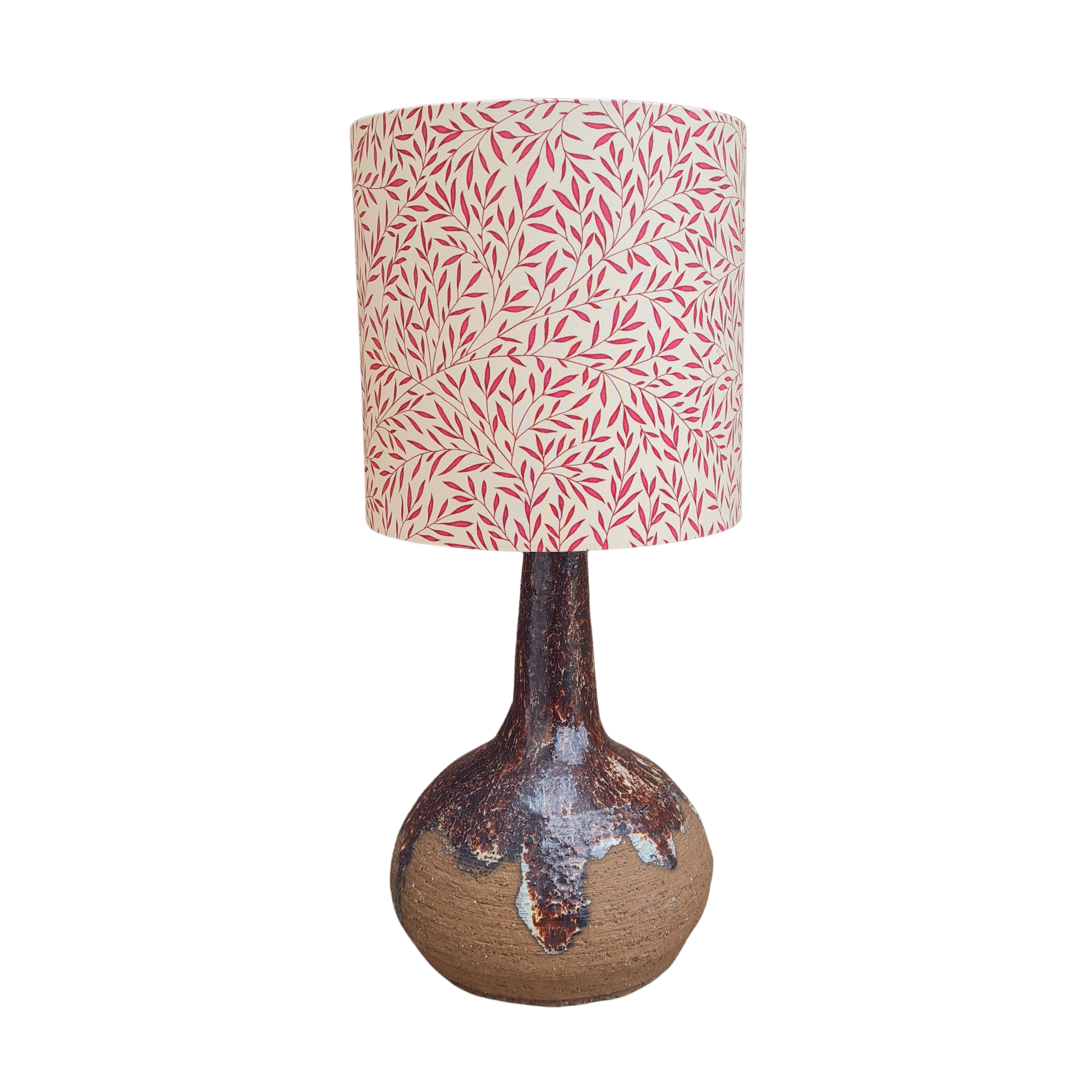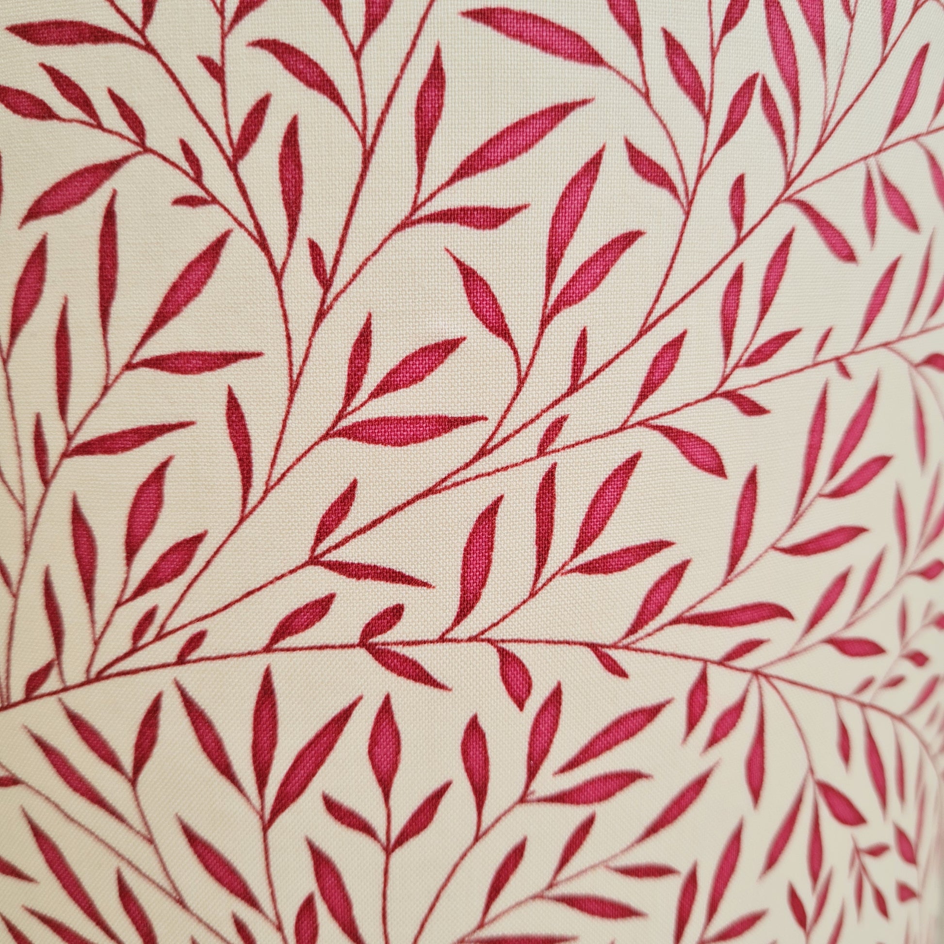 Håndlavet lampeskærm i bomuld med William Morris design Red Willow Bough, lys bagrund med fine kviste i smuk vinrød