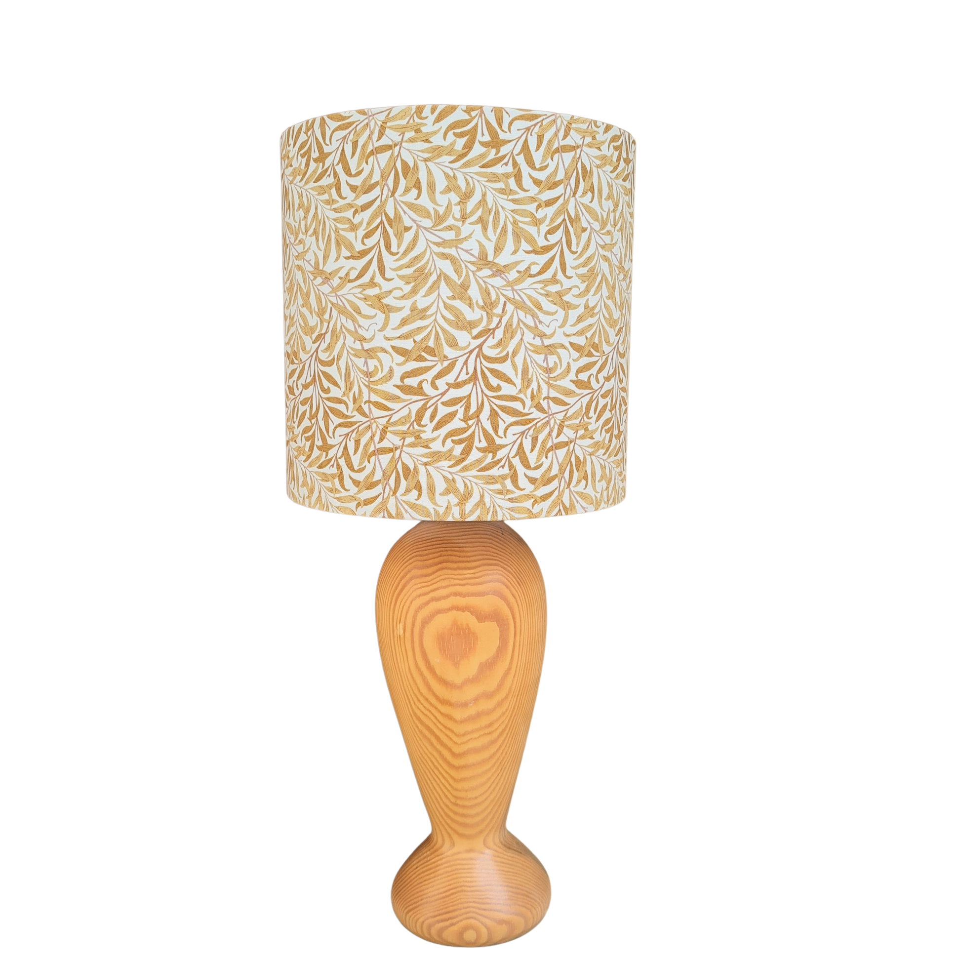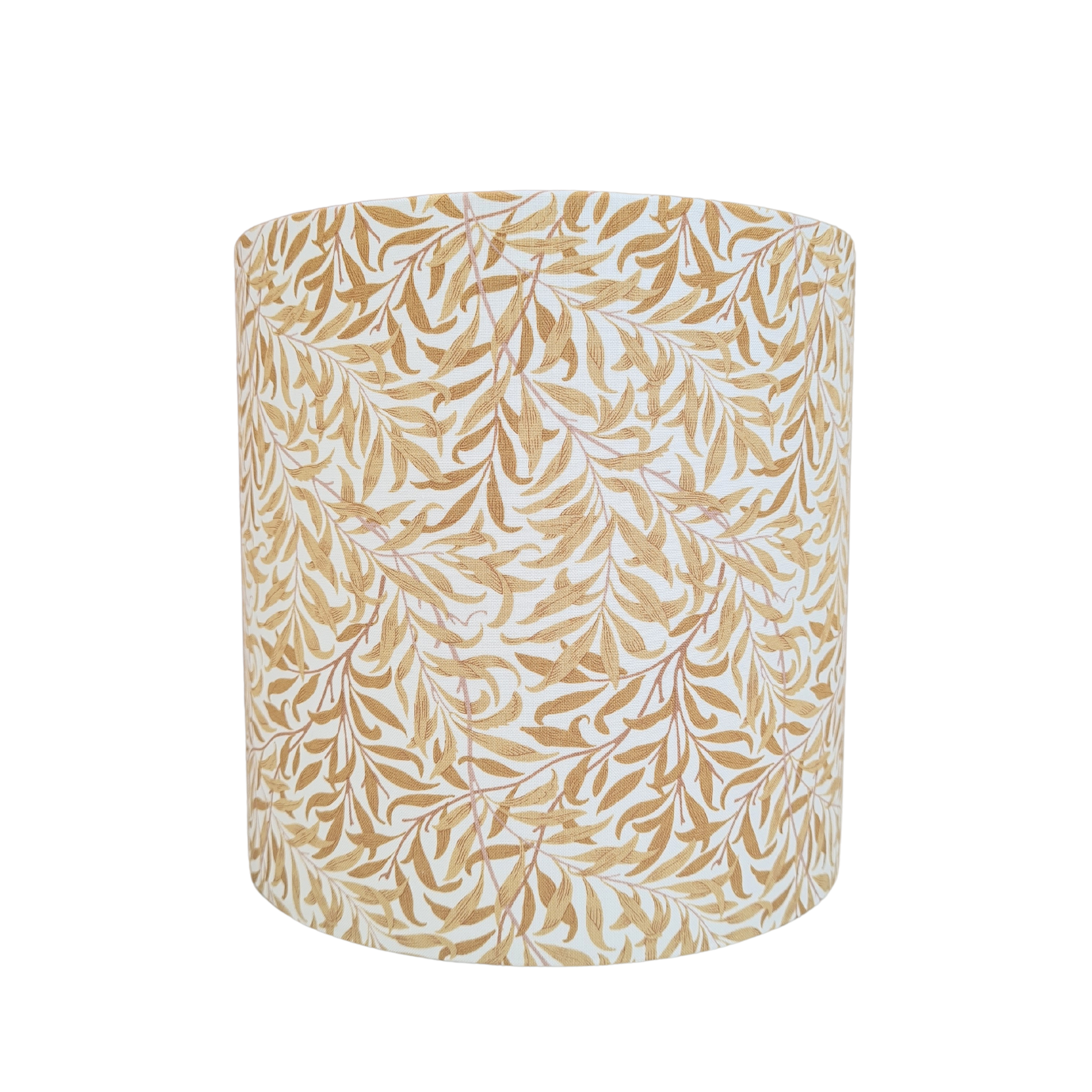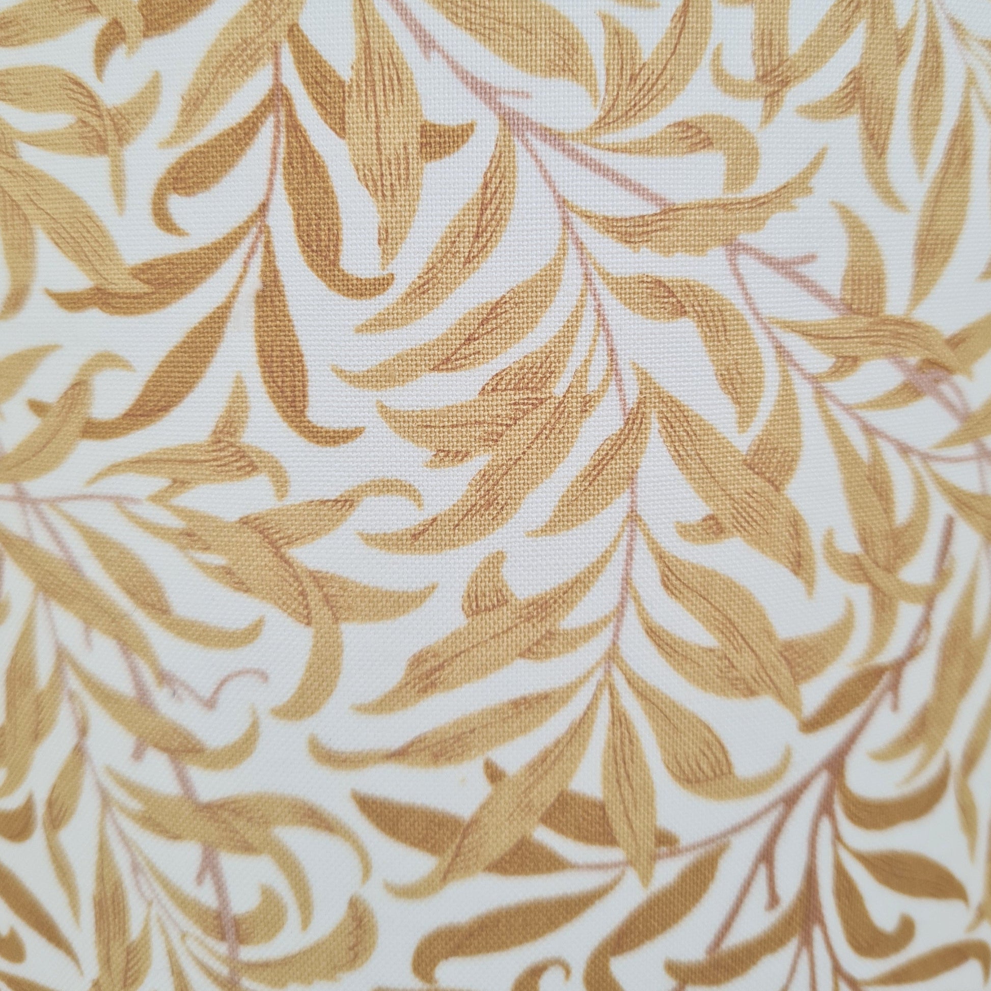 Håndlavet lampeskærm i bomuld med smukt William Morris design med kviste og blade i gyldne toner på lys baggrund