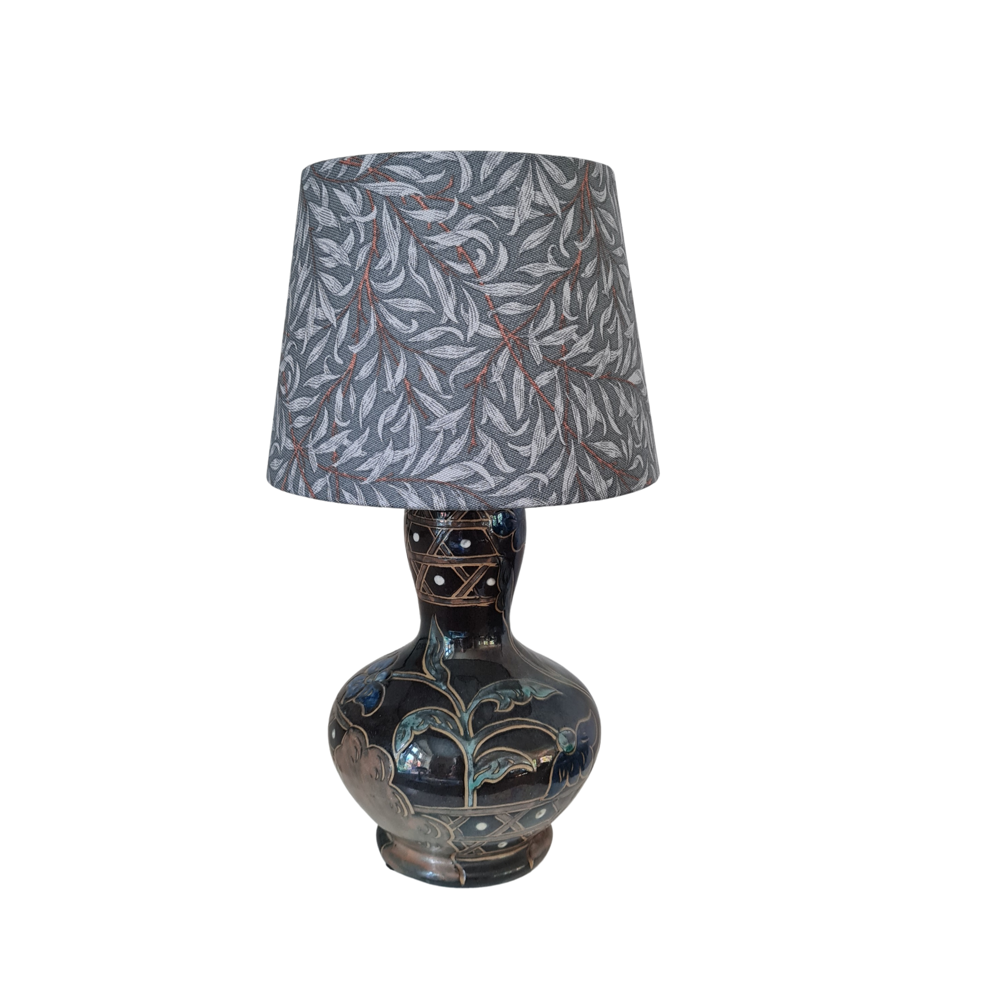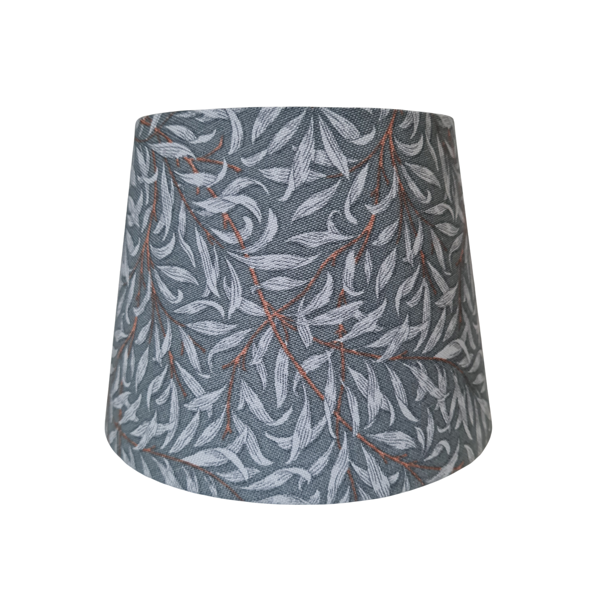 Håndlavet lampeskærm i bomuld med smukke blade i grå og blå med fine brune grene